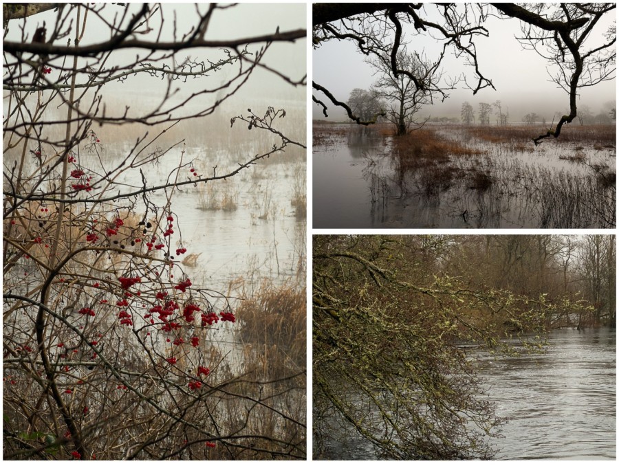 The streams are running fast, carrying lichen-covered alder branches downstream, but if you look closely at what’s still standing, you can see the catkins already forming, tight and waiting. Even in flood, even in December, the trees know spring is coming. The water will recede, the fields will reappear, but for now everything’s suspended - neither fully winter nor quite preparing for what comes next.