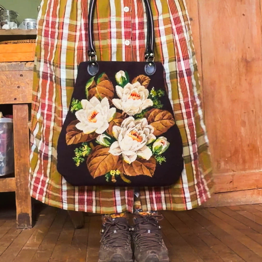 The woman who worked this chair cover: I don’t know her name, or where she lived, or why she stopped. But her hands made this, stitch by stitch. And now it’s a bag I’ll actually use.