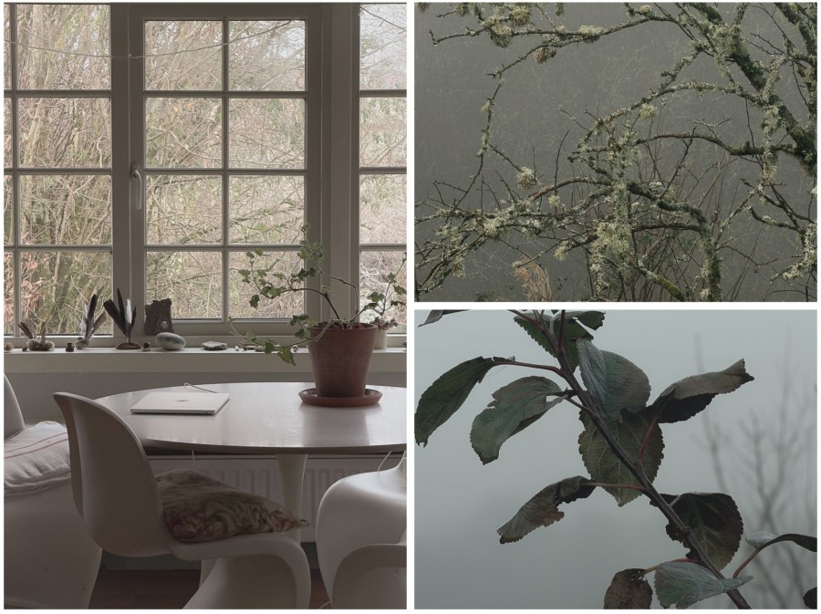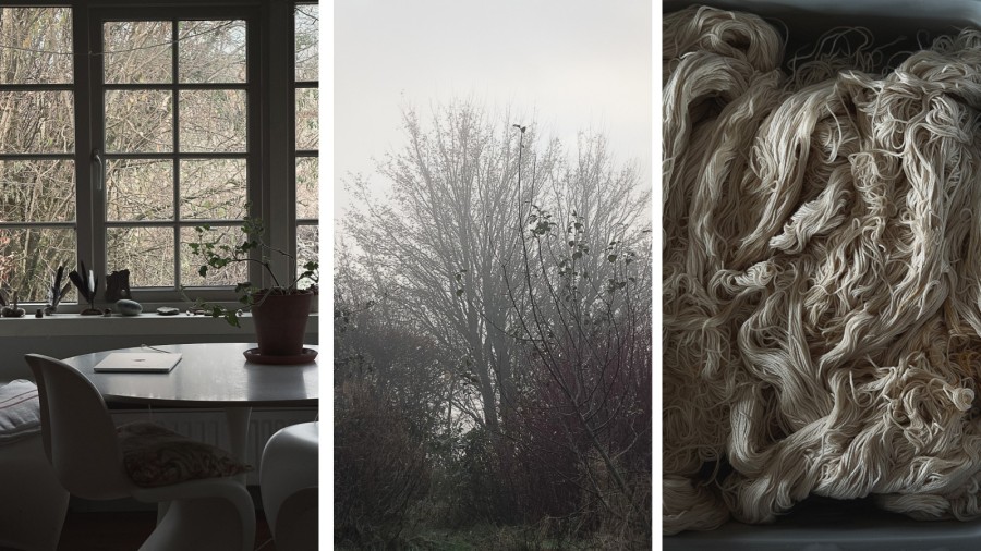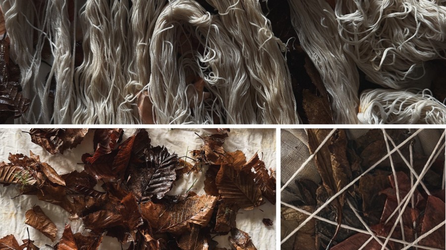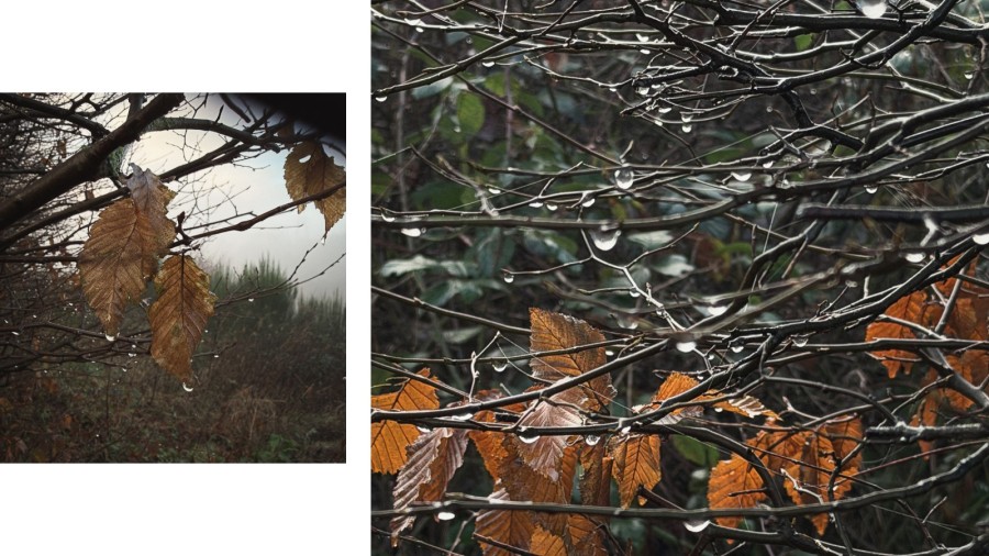 November walks yield different treasures. Sheep tupped blue in wet fields, branches holding water like glass beads, the brown leaves that still hold their shape. All of it goes into the bundles.