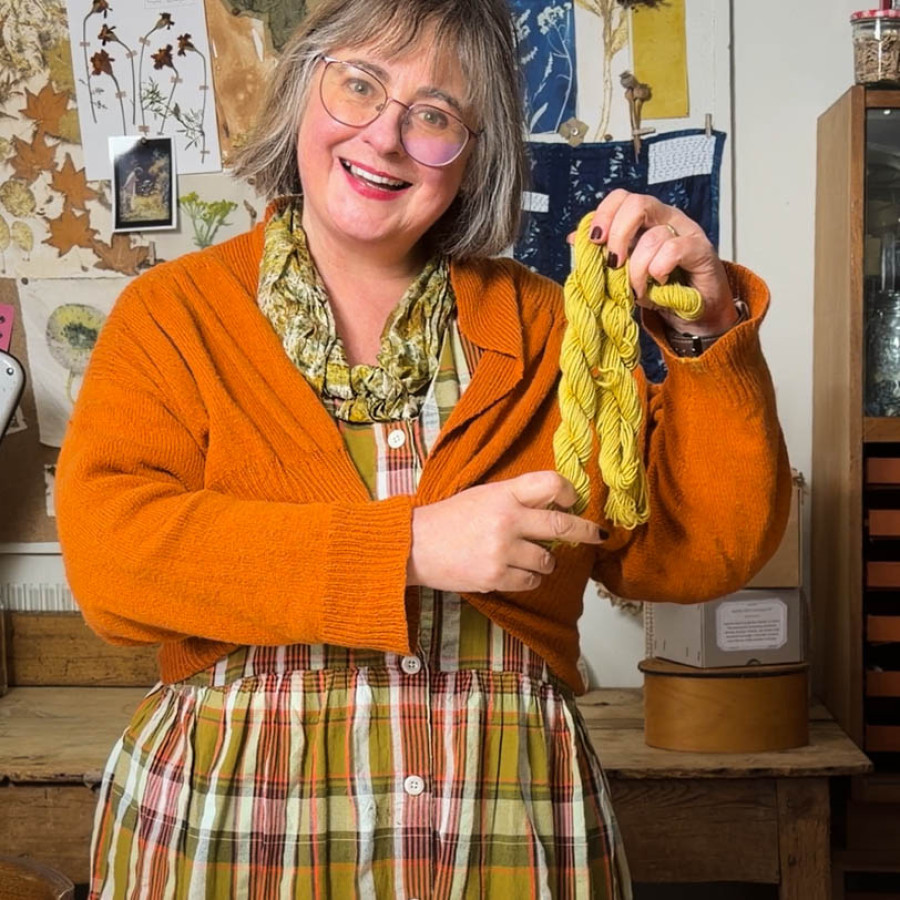 What you get is a warm mid-yellow. Not a sharp acid yellow, more of an old gold. The kind of colour you see in dried mosses and autumn grasses. It’s a colour that sits well with other naturally dyed fibres and doesn’t shout.