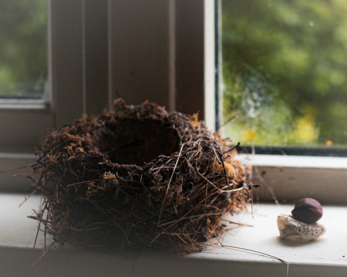 There are bird skulls – I find them when I’m walking, and I bring them home and clean them carefully, and they sit on my shelves like small sculptures. There are nests that have blown out of trees in winter, abandoned, no longer needed. There are stones from particular places, particular walks, particular days.